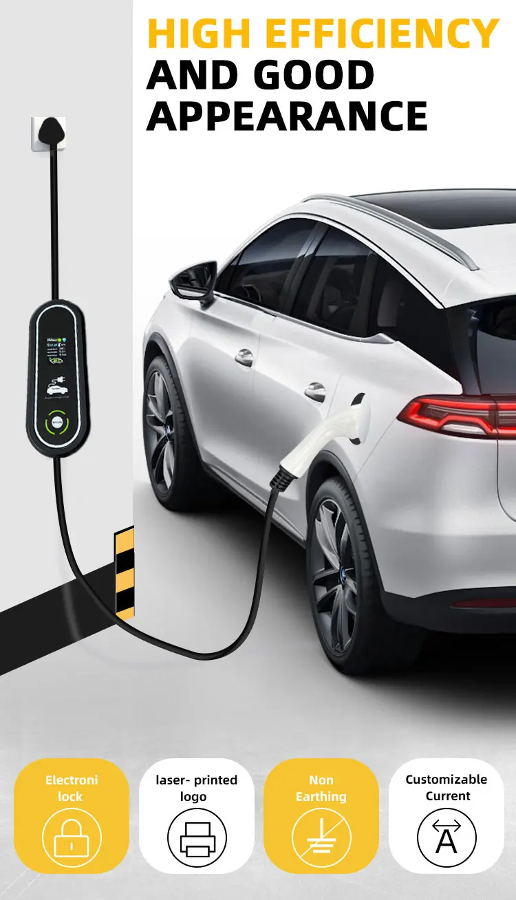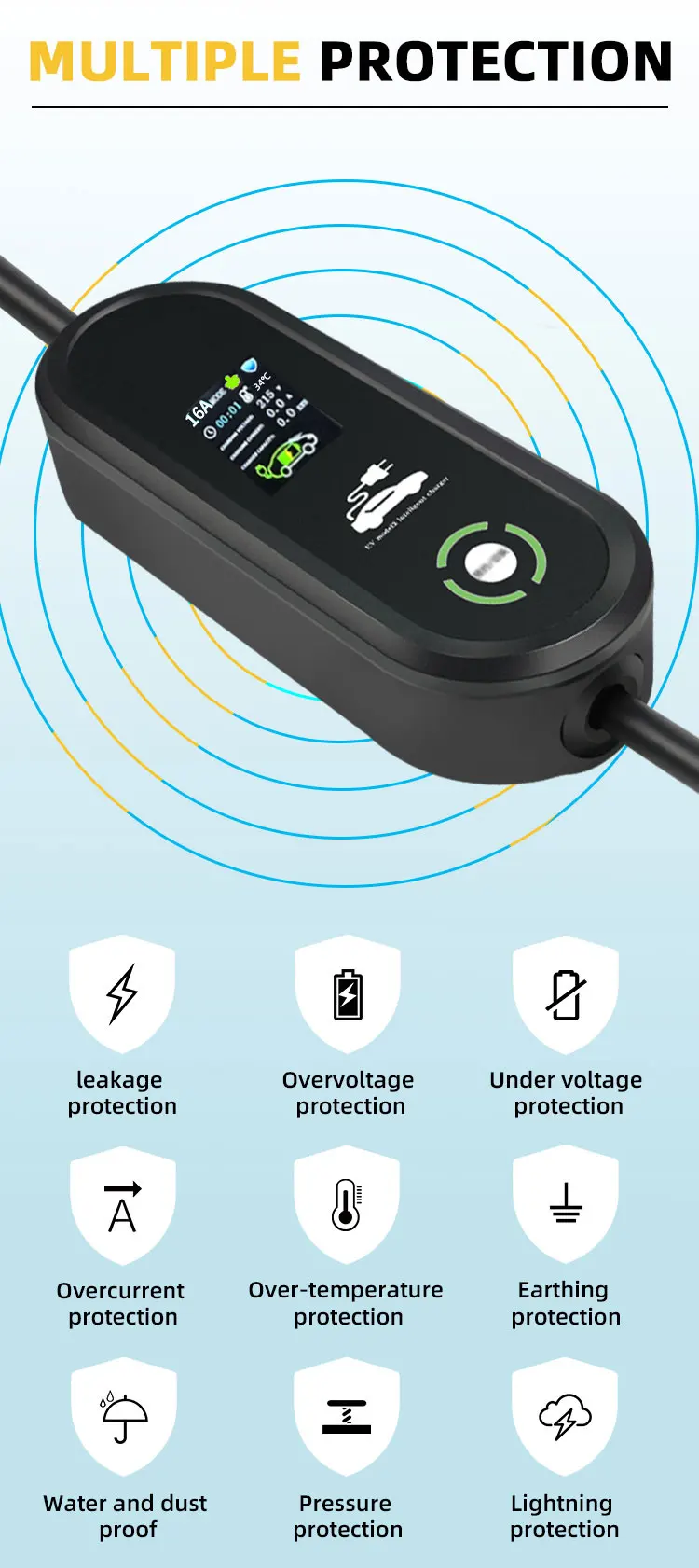 15A 16A Однофазный 120V Режим 2 Уровень 1 Тип 1 Портативный Мобильный Зарядное Устройство для Электромобилей EV с Кабелем для Перезарядки и Светодиодными Лампами
