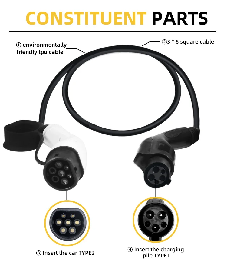 Кабель для зарядки электромобилей 3,3 кВт Wallbox Ac Ev 220 В 16 А с разъемом SAE J1772 тип 1 и разъемом IEC 62196-2 тип 2