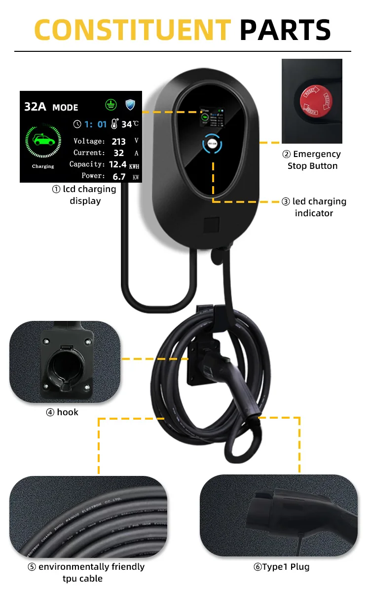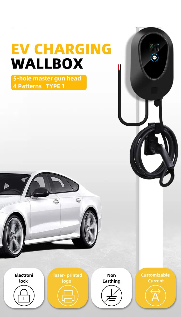 Проектирование производителя Wallbox Коммерческий Ev Ac 7kw 11kw 22kw Электрическая зарядная станция для автомобилей с 5-метровым кабелем