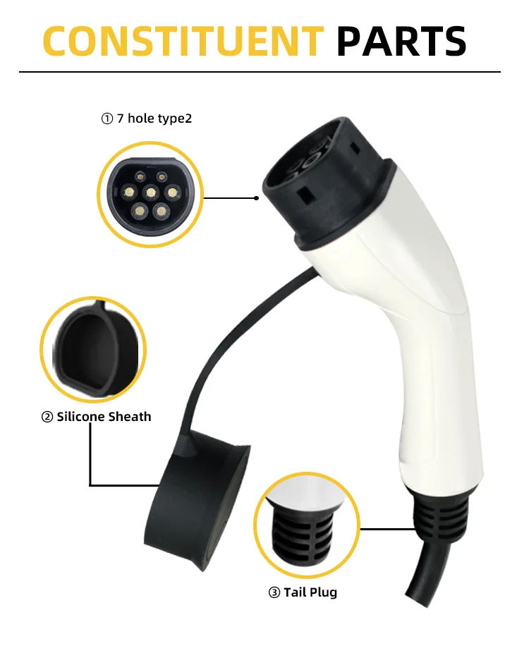 Кабель для зарядки электромобилей Ev 32a 22kw 3-фазный режим 3 62196-2 Тип 2 с разъемом Tuv Certification
